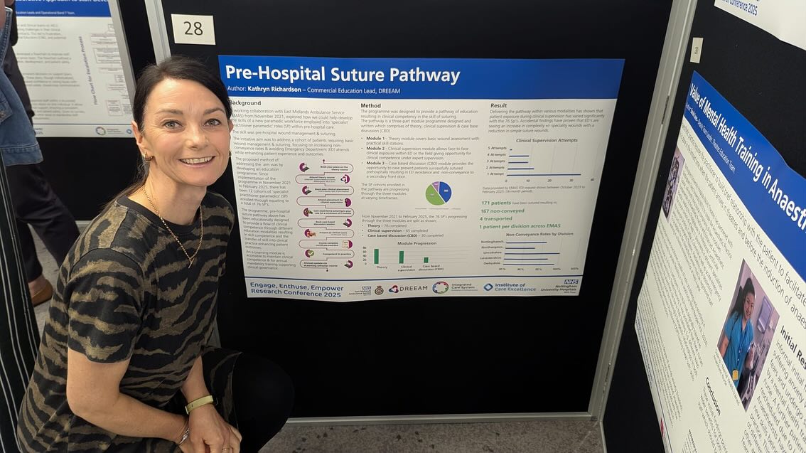 Our Portfolio Lead, Kathryn Richardson, was at the EEE Conference following the success of her Pre-Hospital Suture Pathway poster that shows the improvements she’s made to the non-conveyance rates across the East Midlands in collaboration with East Midlands Ambulance Service.